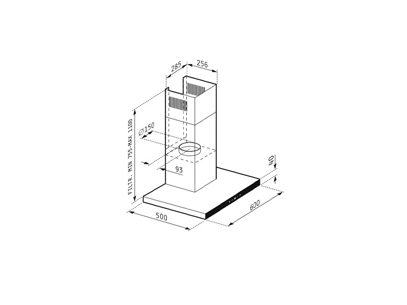 Απορροφητήρας PYRAMIS 065039801, σειρά GRANDEZZO, μαύρο γυαλί και inox. Πιστοποίηση TUV NORD, CE με 2ετούς εγγύηση.