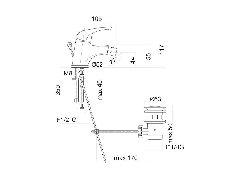 Μπαταρία μπιντέ FIORE Altura Mia 29CR3710 χρωμέ αναμεικτική με αυτόματη βαλβίδα