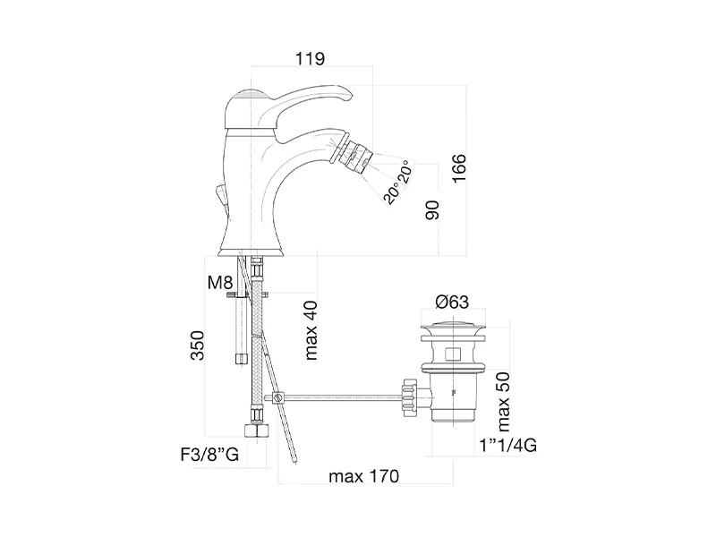 Μπαταρία μπιντέ FIORE Jafar 47CR5321 χρωμέ αναμεικτική με αυτόματη βαλβίδα