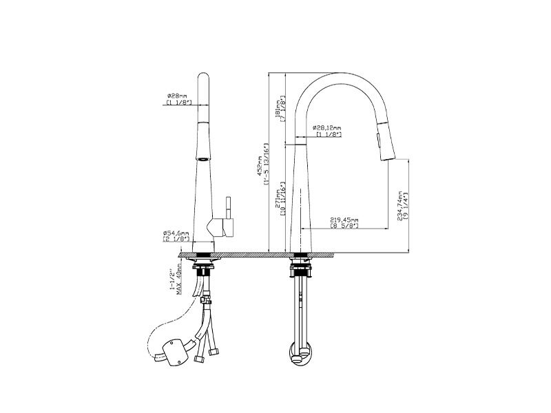 Μπαταρία κουζίνας KARAG Elisa K149 μαύρη, αναμεικτική, ορειχάλκινη με περιστρεφόμενο ρουξούνι. Μηχανισμός κεραμικών δίσκων Sedal, σπιράλ σύνδεσης από ανοξείδωτο ατσάλι 35cm και άριστη ποιότητα επινικέλωσης πάχους 12 micron. Πιστοποίηση CE, TUV, WATERMARK, UPC και 5ετή εγγύηση.