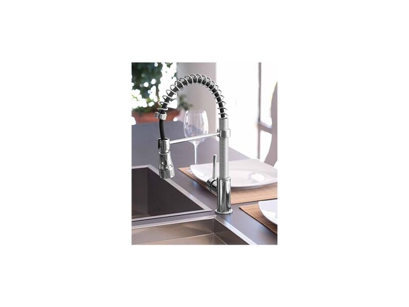 Μπαταρία κουζίνας KARAG Praxis FM56 χρωμέ, αναμεικτική, ορειχάλκινη με τηλεφωνο. Μηχανισμός κεραμικών δίσκων Sedal, σπιράλ σύνδεσης από ανοξείδωτο ατσάλι 35 cm και άριστη ποιότητα επινικέλωσης πάχους 12 micron. Διαθέτει εύκαμπτο μαύρο λάστιχο και περιστρεφόμενο ρουξούνι. Πιστοποίηση CE, TUV, WATERMARK, UPC και 5ετή εγγύηση.