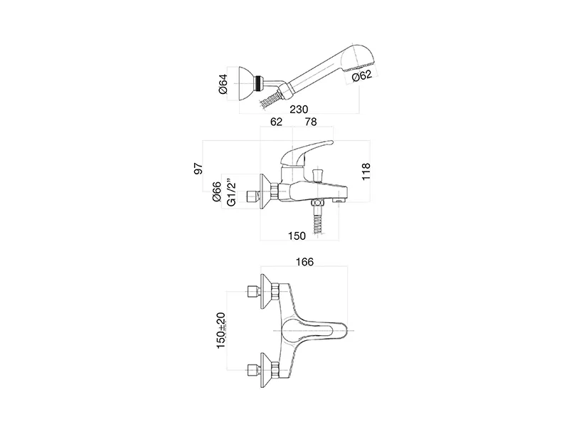 Μπαταρία λουτρού OTTONE MELODA Lexus 4L530-11 χρωμέ αναμεικτική με τηλέφωνο και σπιράλ 150cm