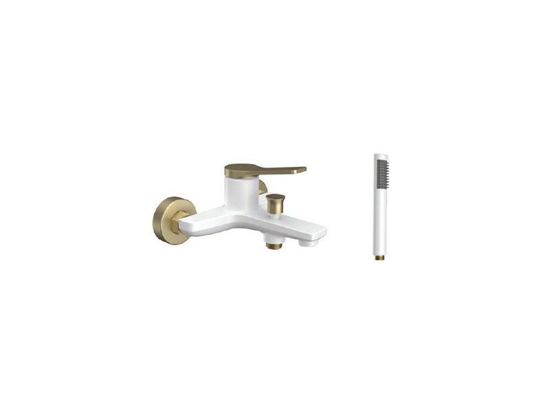 Μπαταρία λουτρού Karag Andare WNX238073PH-B λευκή – χρυσή αναμεικτική με τηλέφωνο, στήριγμα τηλεφώνου και σπιράλ χρωμέ αναμεικτική με τηλέφωνο, στήριγμα τηλεφώνου και σπιράλ