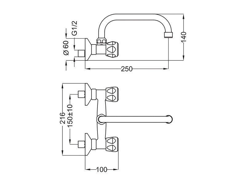 Μπαταρία νεροχύτου OTTONE MELODA Enne 62830U-11 χρωμέ αναμεικτική με ρουξούνι U200 με 10ετή εγγύηση.