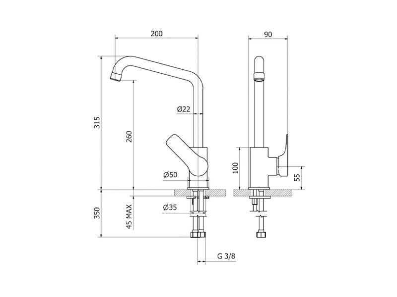 Μπαταρία νιπτήρος OTTONE MELODA Vera 2V735-11 χρωμέ αναμεικτική ψηλή και μακριά χωρίς βαλβίδα