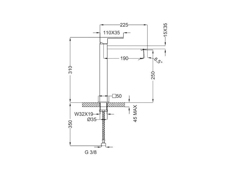 Μπαταρία νιπτήρος OTTONE MELODA Lexus 4L721-11 χρωμέ αναμεικτική ψηλή χωρίς βαλβίδα