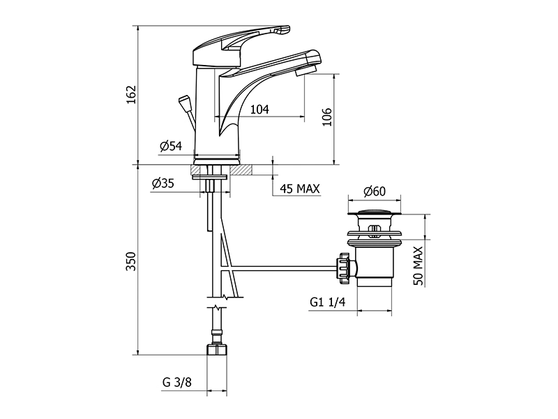 Μπαταρία νιπτήρος OTTONE MELODA Olympia 36736-11 χρωμέ αναμεικτική με βαλβίδα
