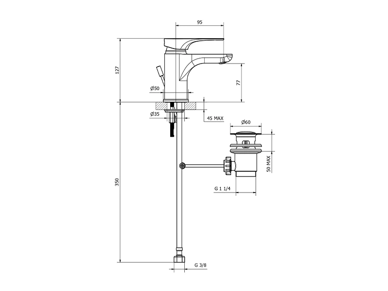 Μπαταρία νιπτήρος OTTONE MELODA Vera 2V710-11 χρωμέ αναμεικτική με βαλβίδα