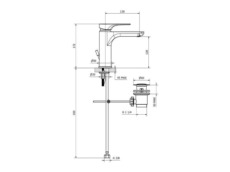 Μπαταρία νιπτήρος OTTONE MELODA Vera 2V730-11 χρωμέ αναμεικτική μεσαία με βαλβίδα