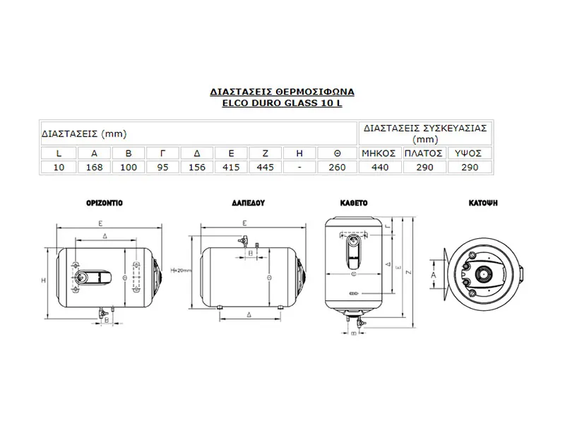 Ηλεκτρικός θερμοσίφωνας ELCO DURO GLASS κάθετος, χωρητικότητας 10L με ηλεκτρική ισχύ 1.5kW και 5έτη εγγύηση (171012).
