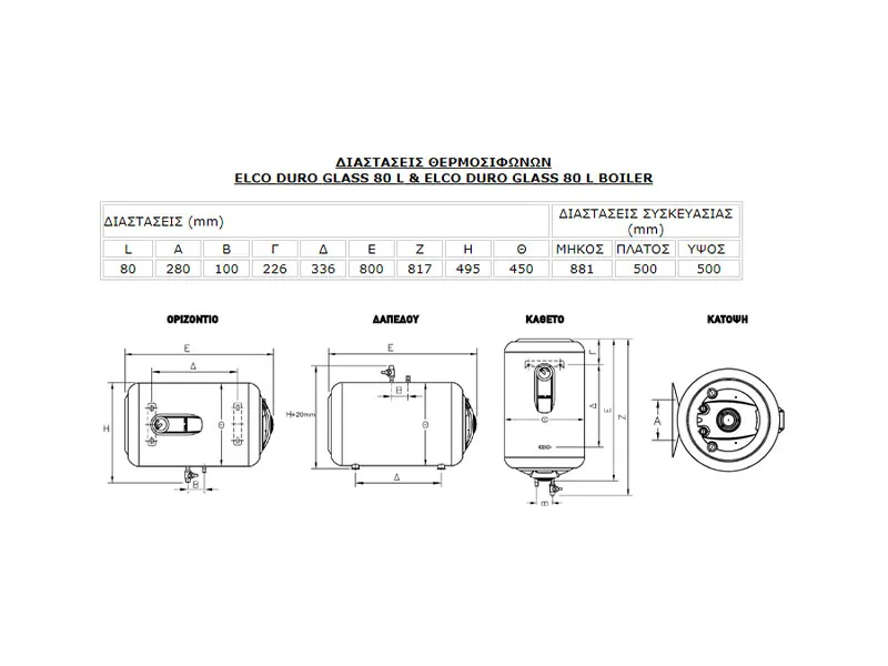 - Χωρητικότητα: 80 λίτρα