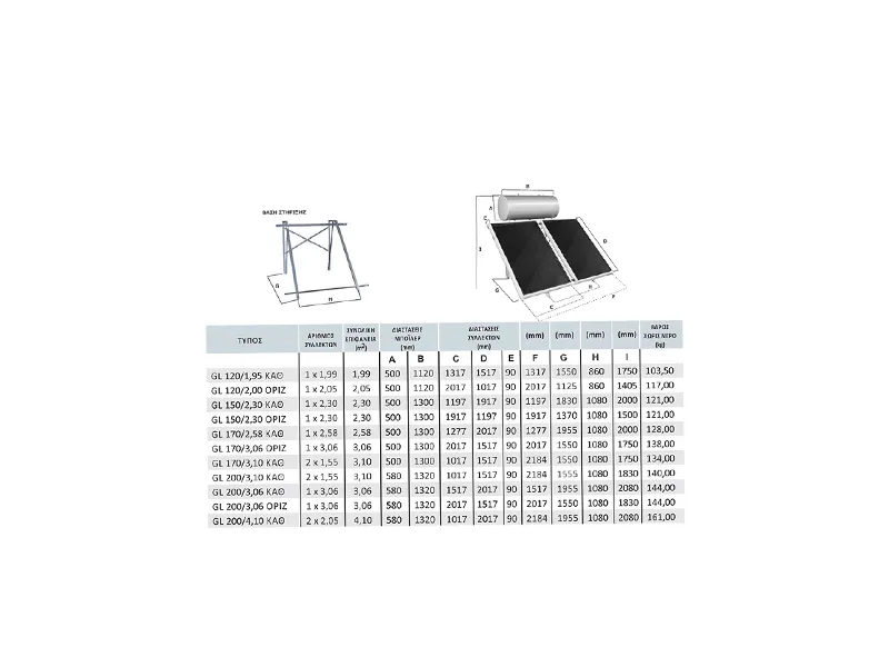 Ηλιακός θερμοσίφωνας SKYLAND Glass Σειρά GL 120lit με Συλλέκτη Οριζόντιο 2.00m2 διπλής ενέργειας