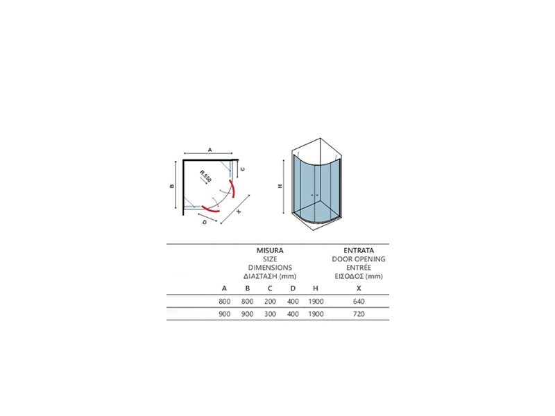Καμπίνα ντουζιέρας Karag Penta 300 & SN-10 χρωμέ 90x90x180cm αλουμίνιο κρύσταλλο SERIGRAFIA