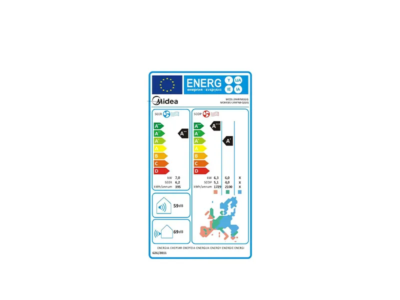| SEER (Εποχιακός Βαθμός Ενεργειακής Απόδοσης Ψύξης) | Ψύξη | (-) | 6.2 |