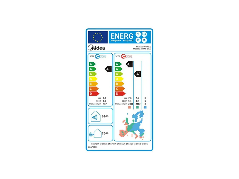 | SEER (Εποχιακός Βαθμός Ενεργειακής Απόδοσης Ψύξης) | Ψύξη | (-) | 6.6 |