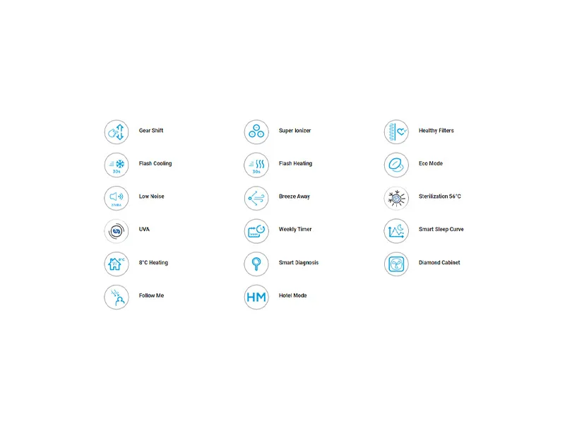 | Στάθμη Θορύβου | Εσωτερικής Μονάδας | dB(A) (Y/M/X/A) | 37/31/22/19 |