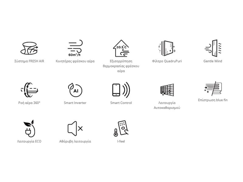 | SEER (Εποχιακός Βαθμός Ενεργειακής Απόδοσης ψύξης) | (W/W) | 8.5 | |