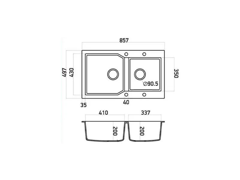 | Διαστάσεις Γούρνας | (mm) | 430x410x200 / 337x350x200 |