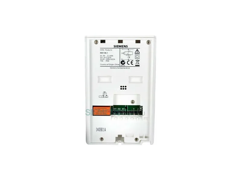 Ψηφιακός θερμοστάτης χώρου SIEMENS RDE100.1 με επιλογή κανονικής και μειωμένης θερμοκρασίας. Χρονοπρόγραμμα ημερήσιος, 5ήμερο, σαββατοκύριακο, εβδομαδιαίο, έως 24 περιόδους την ημέρα. Λειτουργία κλειδώματος πλήκτρων. Πρόσθετη επαφή για εξωτερικό αισθητήριο θερμοκρασίας (QAA32) ή ψυχρή επαφή on/off.
