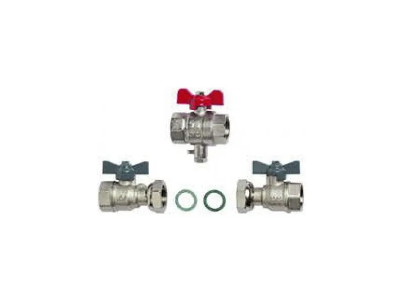 Σετ εγκατάστασης θερμιδομετρητή SIEMENS Rp3/4“, αποτελούμενο από 2 σφαιρικές βάνες Rp3/4“ με ρακόρ G3/4“ και περμανίτη, μία σφαιρική βάνα Rp3/4“ με σπείρωμα M10x1mm για αισθητήριο θερμοκρασίας Ø5.0x45mm (HMXIK001:002)