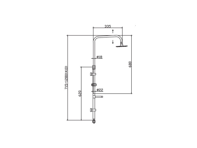 Βέργα ντούζ OTTONE MELODA Fix 1563-11 χρωμέ αναμεικτική, διανεμητή, κεφαλή ντούζ και σετ σύνδεσης