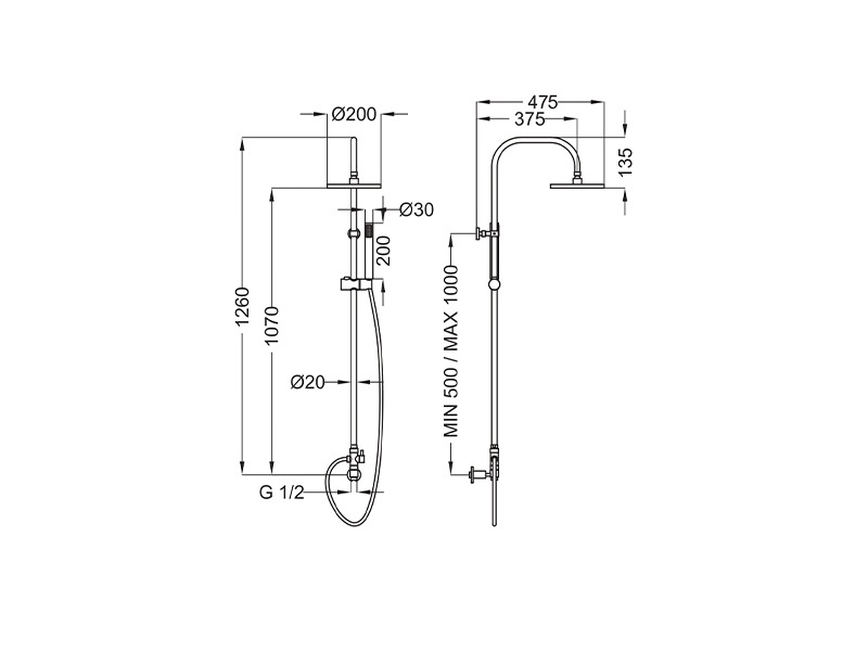 Βέργα ντούζ OTTONE MELODA Fix 1563-11 χρωμέ αναμεικτική, διανεμητή, κεφαλή ντούζ και σετ σύνδεσης